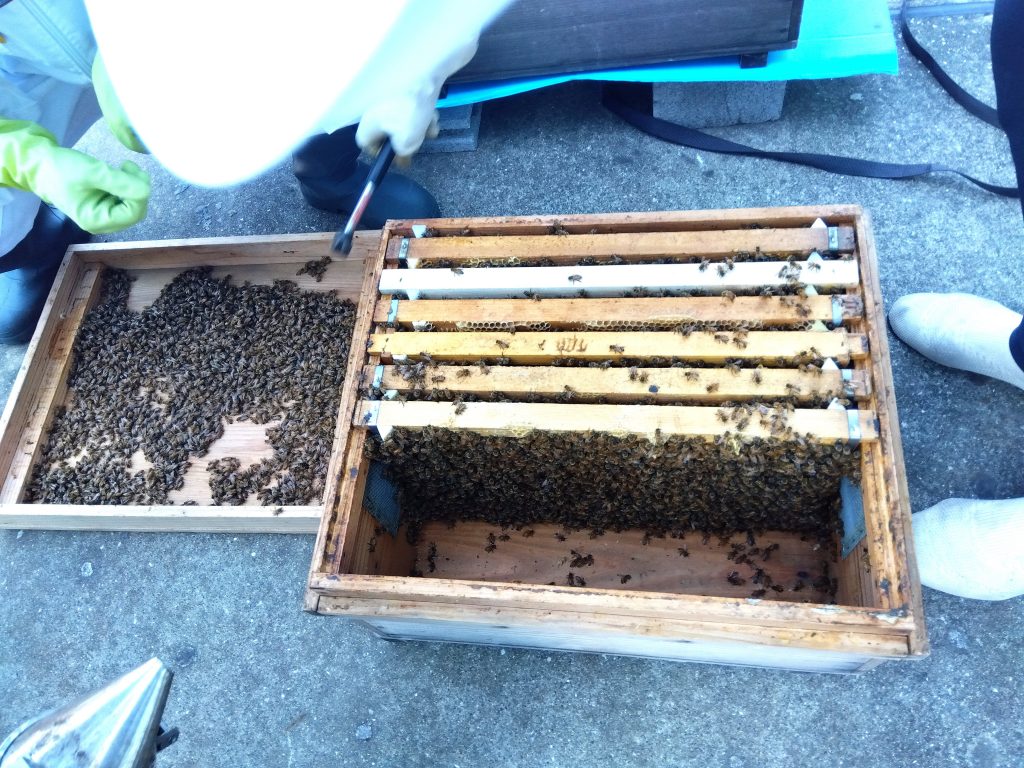 今シーズンの養蜂を乗り切る為に、今週は、女王ありの群を先週の一群に加え、もう一群追加