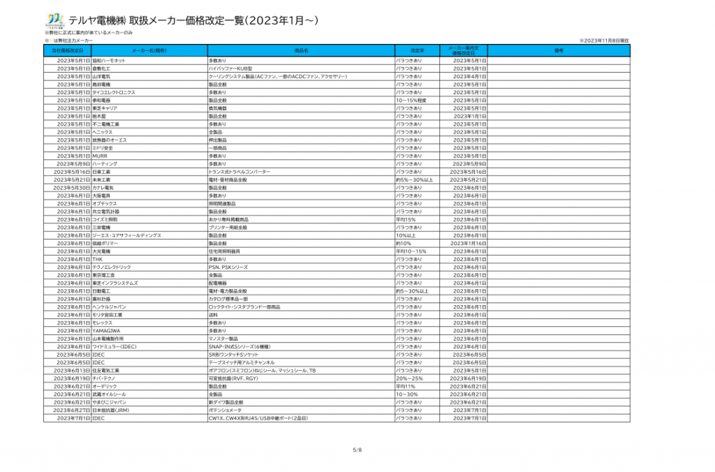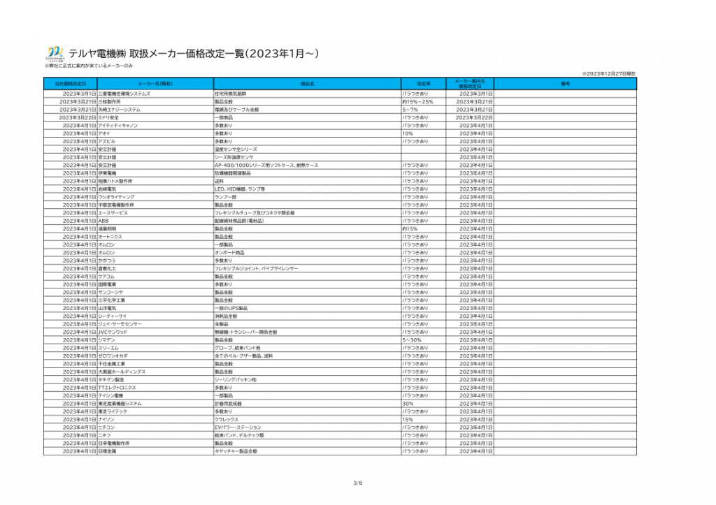 【参考】2023年価格改定資料(全8ページ)